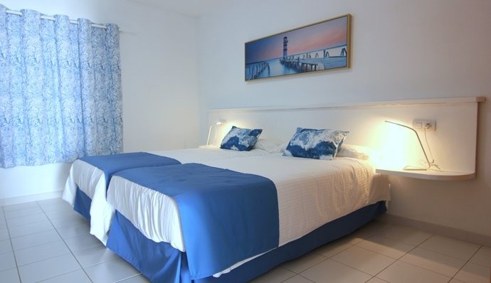48 m² große Wohnung mit einer maximalen Kapazität für drei Personen. Sie verfügt über ein Schlafzimmer mit zwei Einzelbetten und ein Schlafsofa im Wohnzimmer, Bad mit Haartrockner, Wohn-Esszimmer, Küche (komplett mit Geschirr, Cerankochfeld, Kühlschrank, Mikrowelle, Kaffeemaschine, Toaster und Wasserkocher ausgestattet), kostenloses WLAN, Radio, Sat-TV, Safe, Telefon und Balkon oder Terrasse.